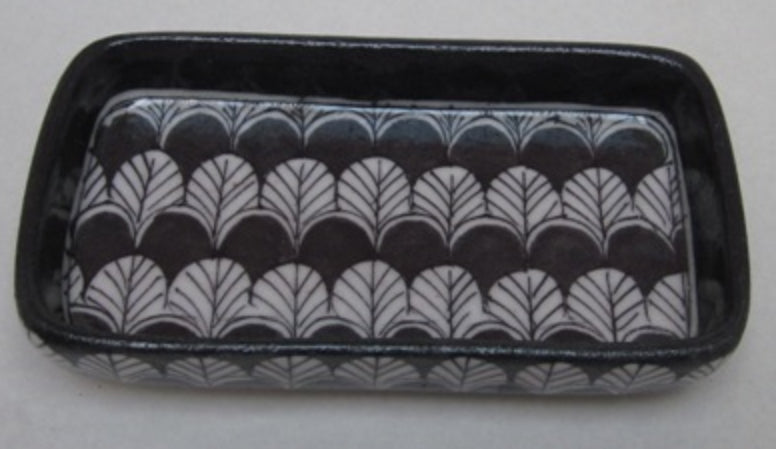 Hand Painted Blue Pottery Soapdish rectangle.