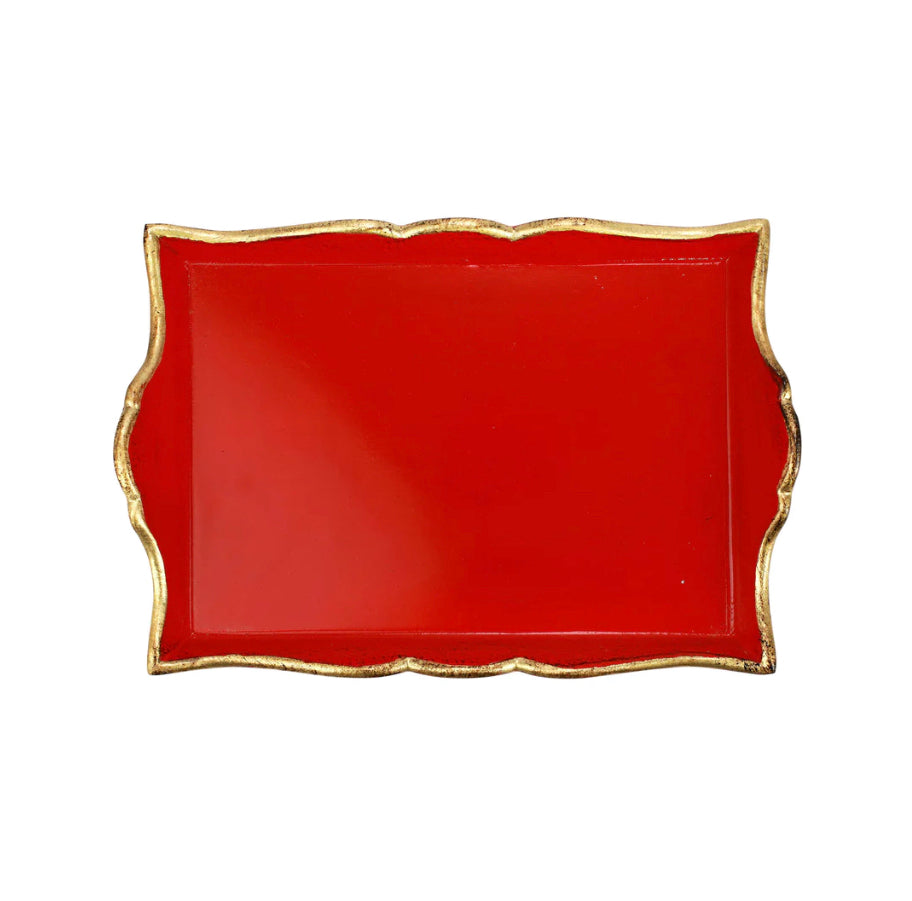 Florentine Wooden Red & Gold Medium Rectangular Tray
