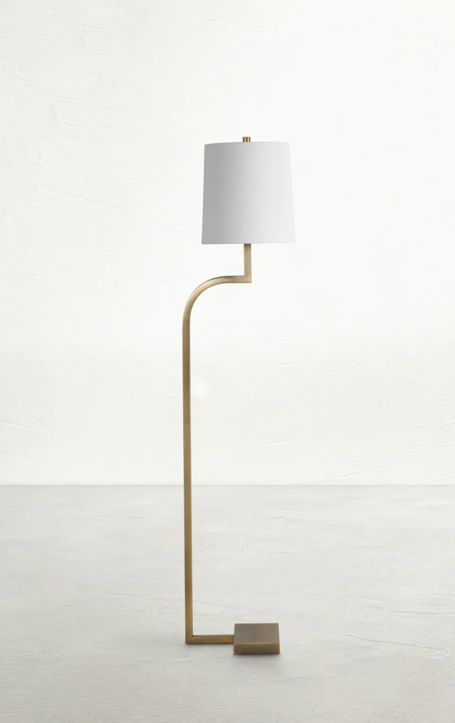 The Hawthorne Floor Lamp is a striking combination of modern design and classic elegance. Crafted from iron with a matte antique brass finish, this floor lamp features a sleek, curved silhouette that adds a touch of sophistication, while also making it incredibly easy to slide under furniture while giving out plenty of light. The design is topped with a crisp white linen shade, which provides a soft, diffused light perfect for creating a warm and inviting atmosphere. Ideal for living rooms, bedrooms, or reading nooks, the Hawthorne Floor Lamp effortlessly enhances your decor with its timeless appeal.