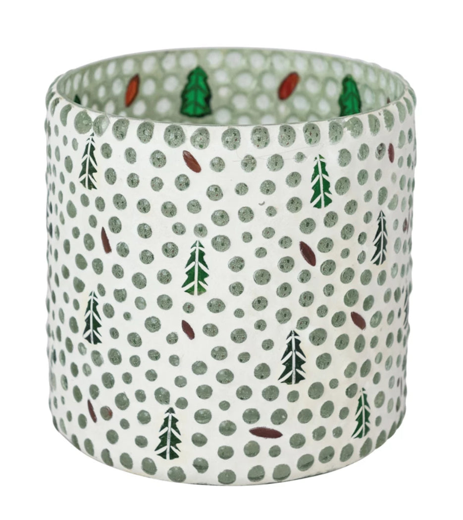 4-3/4" Round x 4-3/4"H Glass Mosaic Tealight/Votive Holder w/ Trees, Multi Color