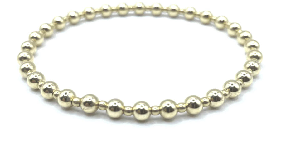 Add dimension to your stack with our 14k gold filled 4-2-4mm mixed beaded stretch bracelet. Wear single or stack it. Part of our erin gray waterproof collection.