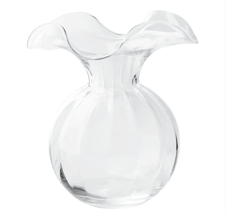 Skilled Tuscan artisans reimagine the beauty and delicate nature of the hibiscus flower in our mouthblown Hibiscus Glass. Curving, romantic, and fresh, the collection exudes easy elegance. The Hibiscus Glass Clear Medium Fluted Vase is a beautiful complement to any floral arrangement.Product Dimensions: 9"D, 10"H, 96 oz