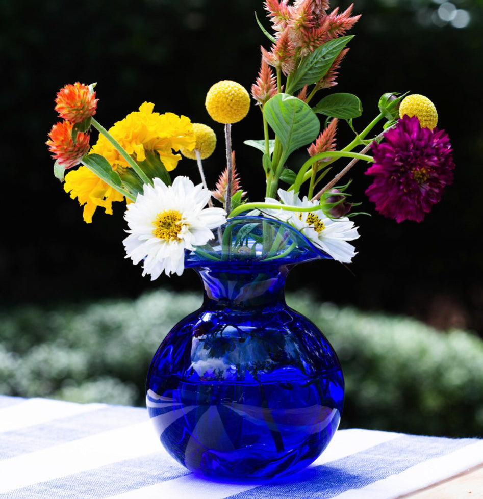 Skilled Tuscan artisans reimagine the beauty and delicate nature of the hibiscus flower in our mouthblown Hibiscus Glass. Curving, romantic, and fresh, the collection exudes easy elegance. The cool hue of the Hibiscus Glass Cobalt Bud Vase brings freshness and beauty to even the simplest floral arrangement.