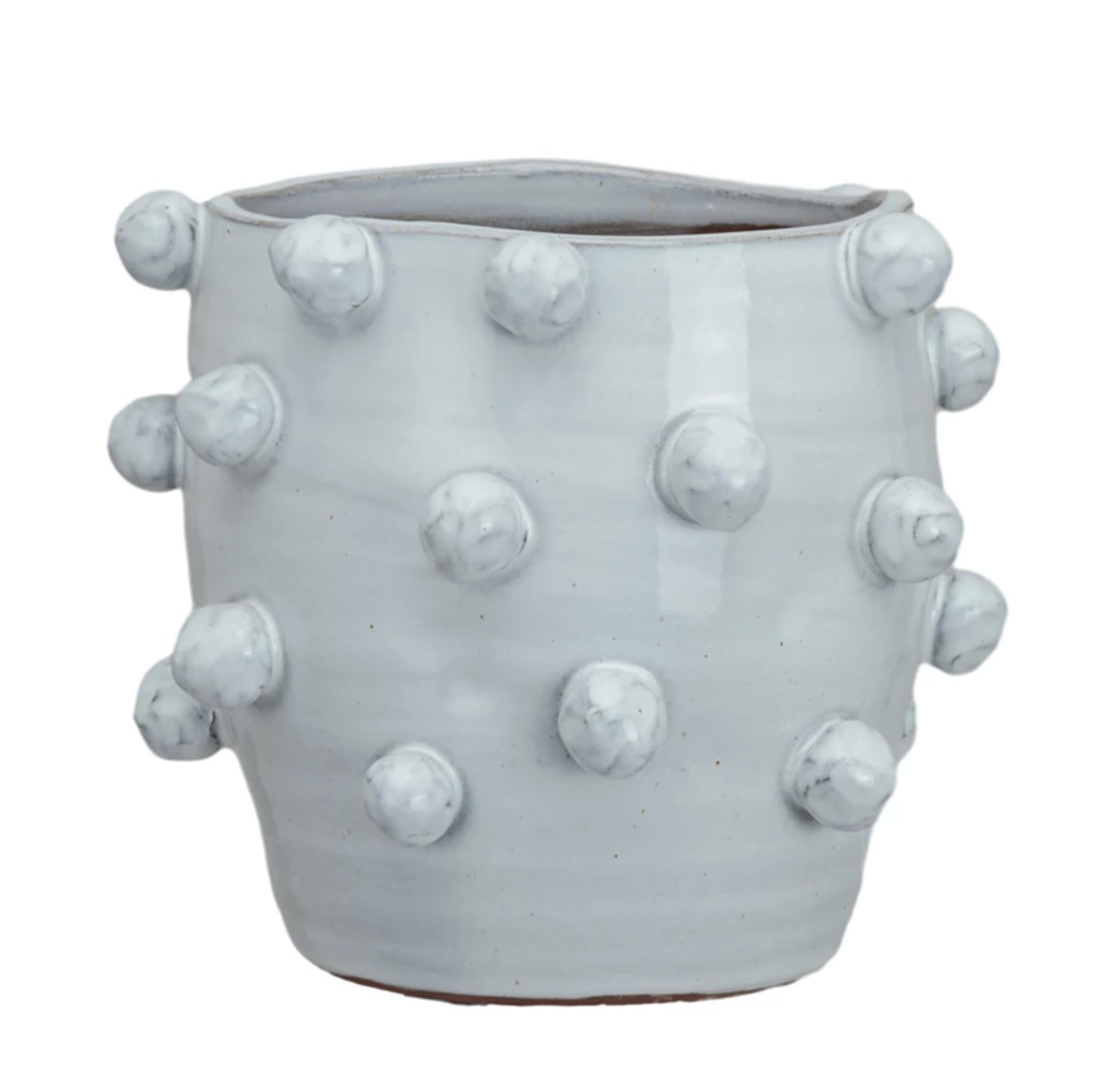 This Round Handmade Hobnail Terra-cotta Planter is a charming addition to any plant enthusiast's collection. The hobnail texture adds a unique touch to the classic white finish, making it a standout piece that complements a range of decor styles. It measures 8.25 inches in diameter and 7.25 inches in height, providing a stylish home for every greenery. Designed to accommodate a 7-inch pot, it's versatile enough for herbs, flowers, or small shrubs. Whether aiming for a modern look or a more rustic vibe, this planter blends seamlessly, bringing a fresh and artisanal feel to any space and making it a perfect gift for any occasion.