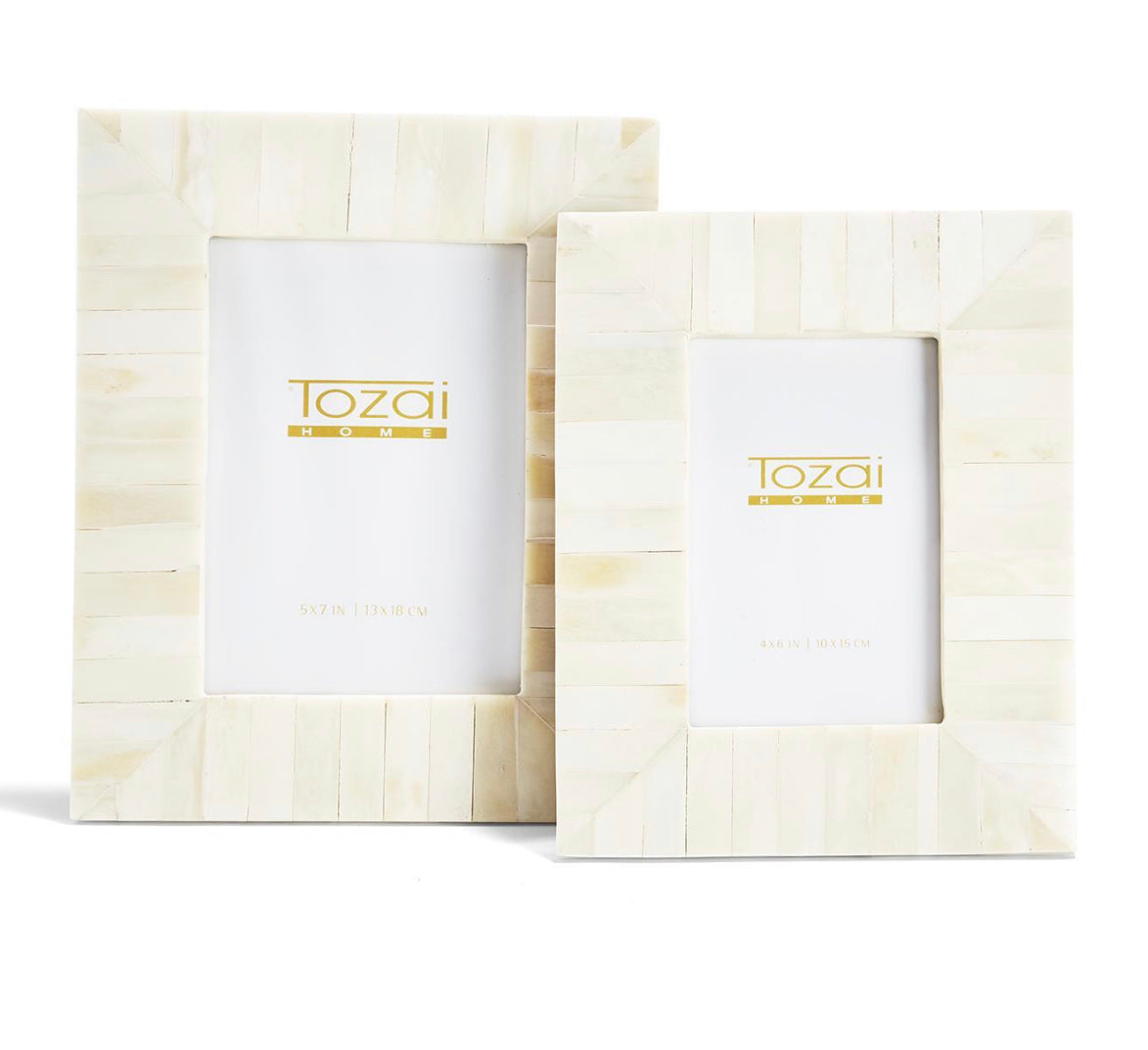 These gorgeous bone frames are hand-crafted in a small village in India that specializes in bone craftsmanship. Each piece of bone is cut and placed by hand.