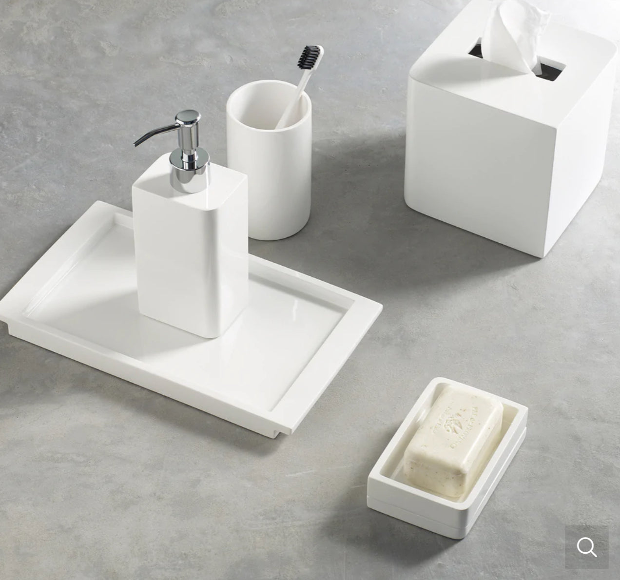 Minimalist design is perfected in our sleek white Lacca bath accessories. Made from lacquer.