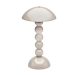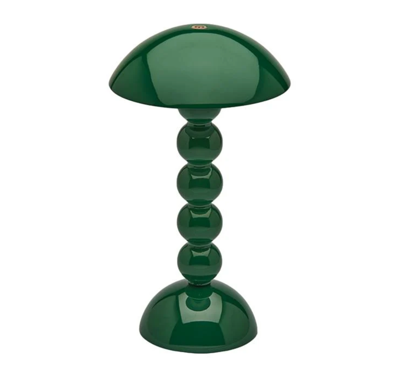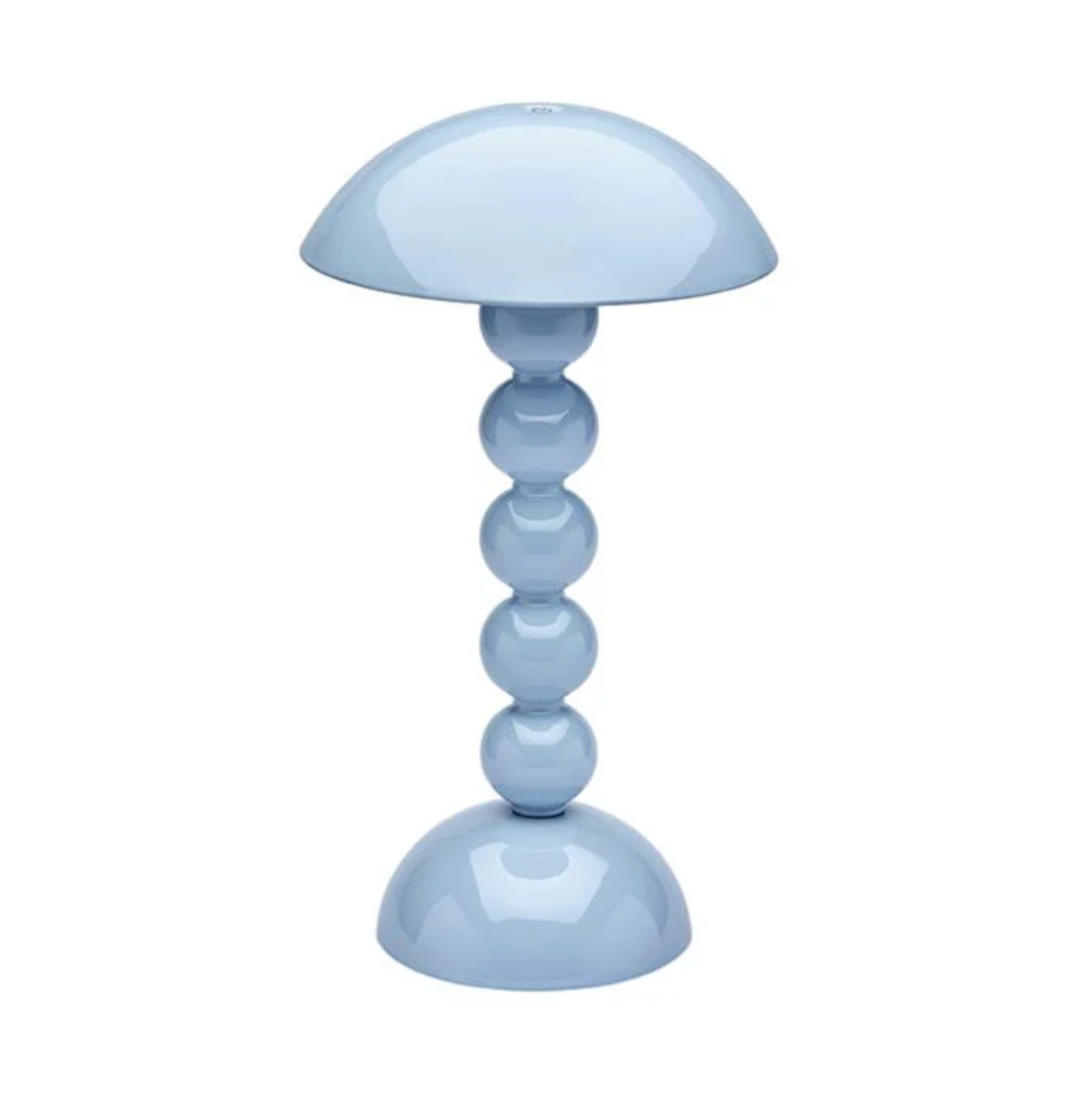 This one-of-a-kind rechargeable lamp features a Bobbin-Shaped design. It offers up to 10 hours of battery life on its brightest setting and has three adjustable light levels.