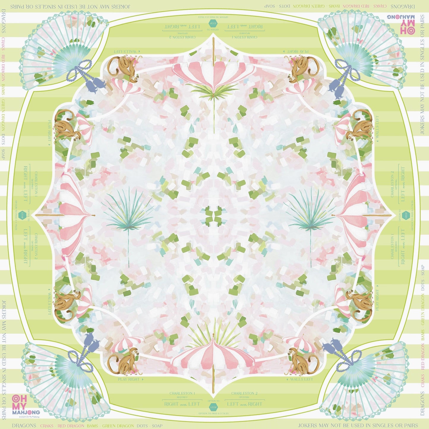 The Capri Mahjong Mat, crafted in collaboration with Catherine Cartie, brings a slice of Italian beauty to your game table. Designed to complement the lively Limoncello Tiles, this mat is full of captivating purple, pink, and green shades. The Capri mat is a vibrant masterpiece inspired by coastal Italian vibes and warm, sunlit days. Made from neoprene for easy cleanup and featuring a secure rubber non-slip backing, Capri ensures a flawless playing experience. Instructional reminders line the edges for a game that’s as smooth as it is stylish. Dimensions: 33x33 Comes rolled in a canvas drawstring bag.