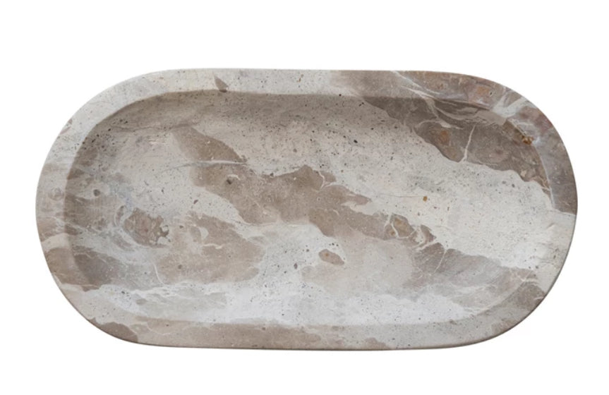9-3/4"L x 5"W Marble Dish, Buff Color (Each One Will Vary)