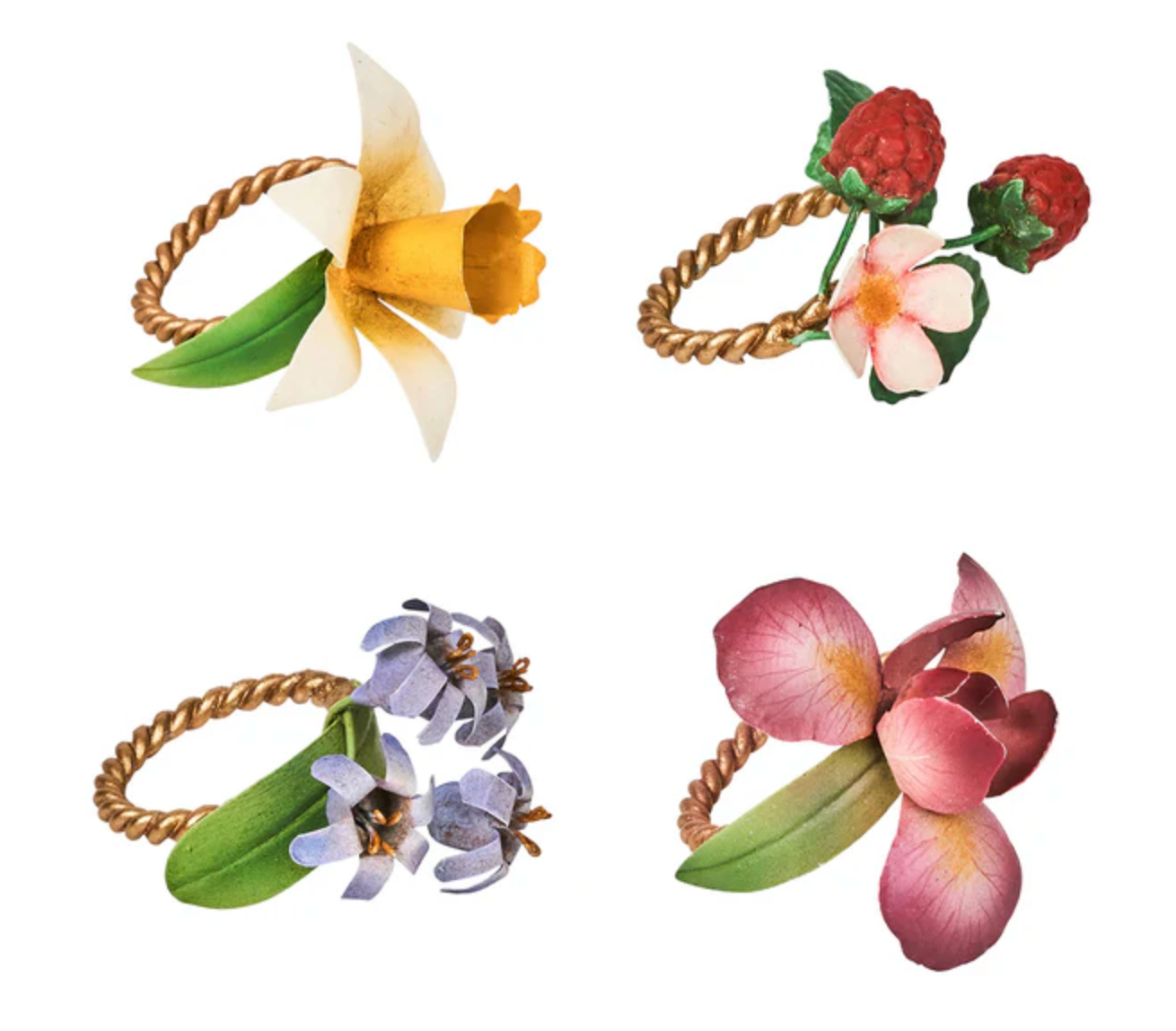 No garden party, afternoon tea or brunch would be complete without these beautifully detailed blooms that deliver an irresistible pop of color and flower power to every table setting. These forever florals are made of intricately hand-painted metal upon a gilded ring with our iconic Berry & Thread motif.