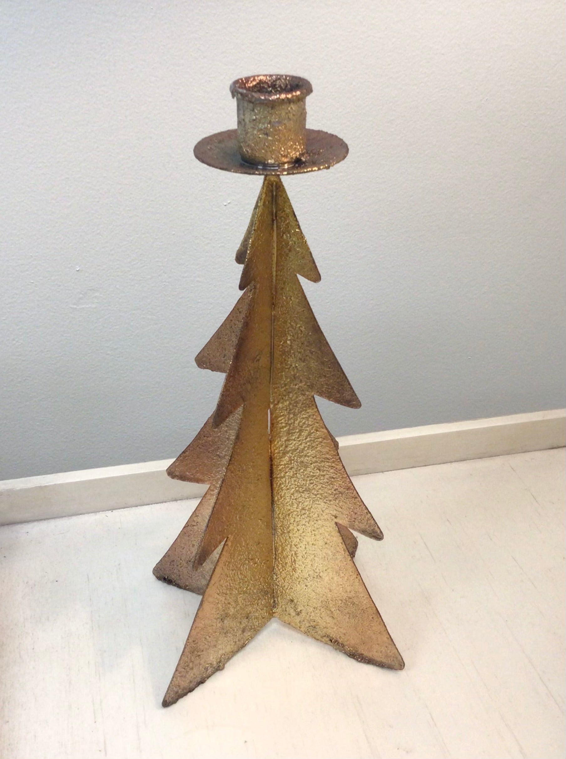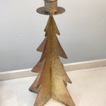10”H 5”W Antiqued Metal Golden Christmas Tree Candleholders