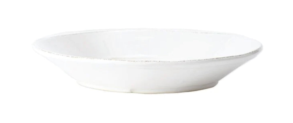 Beloved for its sophisticated simplicity, versatility, and durability, Lastra is our bestselling collection, and it now comes in a child-friendly, lightweight melamine. The understated elegance, clean lines, and unique shape of the Melamine Lastra White Pasta Bowl make it a timeless choice for any table. Lastra’s design was inspired by the circular wooden slabs used for centuries to create the outer mold in cheesemaking throughout Italy. When fashioned together with twine, the hoop was left with a slight overlap to help maintain the shape of the cheese mold. Maestro molder Stefano Roselli incorporates the overlapping detail into the entire design, from its foot to its rim. A dark dusting on the edges of each piece suggests the ash that was used to preserve these cheeses and highlights each unique silhouette.