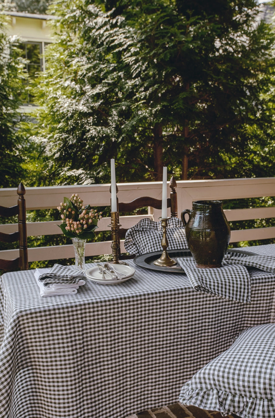 Mini Gingham Check Tablecloth Olive 60”x90”