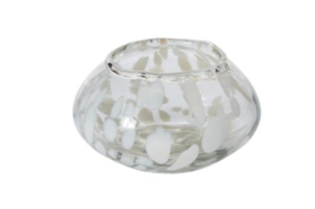 Made from confetti glass with a trendy white pattern, bulbous shape, organic rim & color variation, this colored glass piece is truly unique for on-trend wedding & event design.