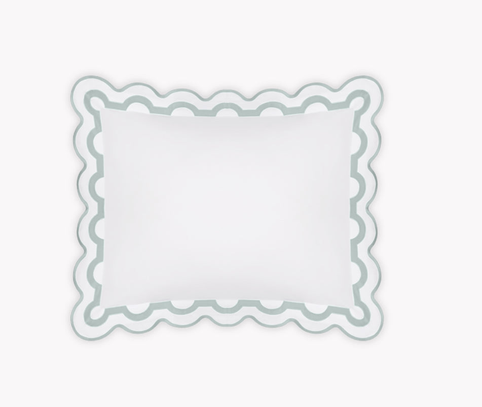 Inspired by a stroll down Worth Avenue in Palm Beach, the unique arch trim of shop awnings becomes a tasteful complement to our soft and luxurious 600 thread count Milano Egyptian cotton percale bedding, made in Italy.