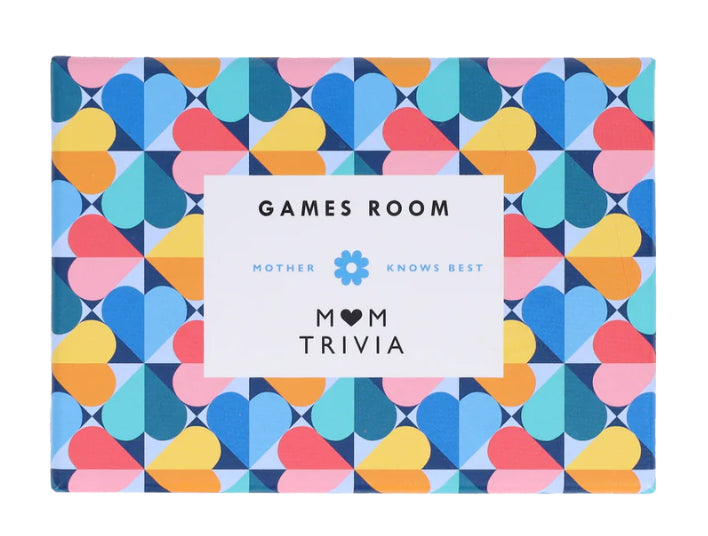 ALL ABOUT MOM TRIVIA SET: This bright, portable box is filled with 140 surprising and engaging trivia questions about all types of moms! Perfectly sized to throw in a bag to take to game night, a parent's house, a family celebration, or on vacation.