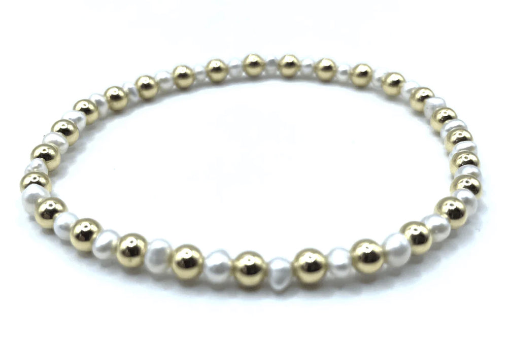 14k gold filled beads with fresh water pearls stretch bracelet. Wear single or stack it. Part of our erin gray waterproof collection.