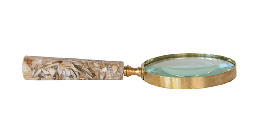 9"L x 4"W Mother of Pearl & Resin Magnifying Glass, Brass Finish