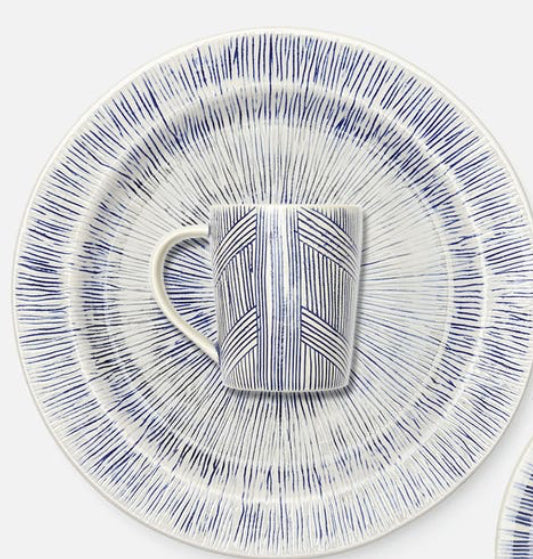 This artful stoneware collection—borne of eclectic inspiration,ranging from the designs of traditional weavings to the geometric art of Sol LeWitt—is our boldest pattern yet! Each piece is handpainted for an artisanal update on tabletop’s stripes trend. Mix with solids to see the collection really pop.