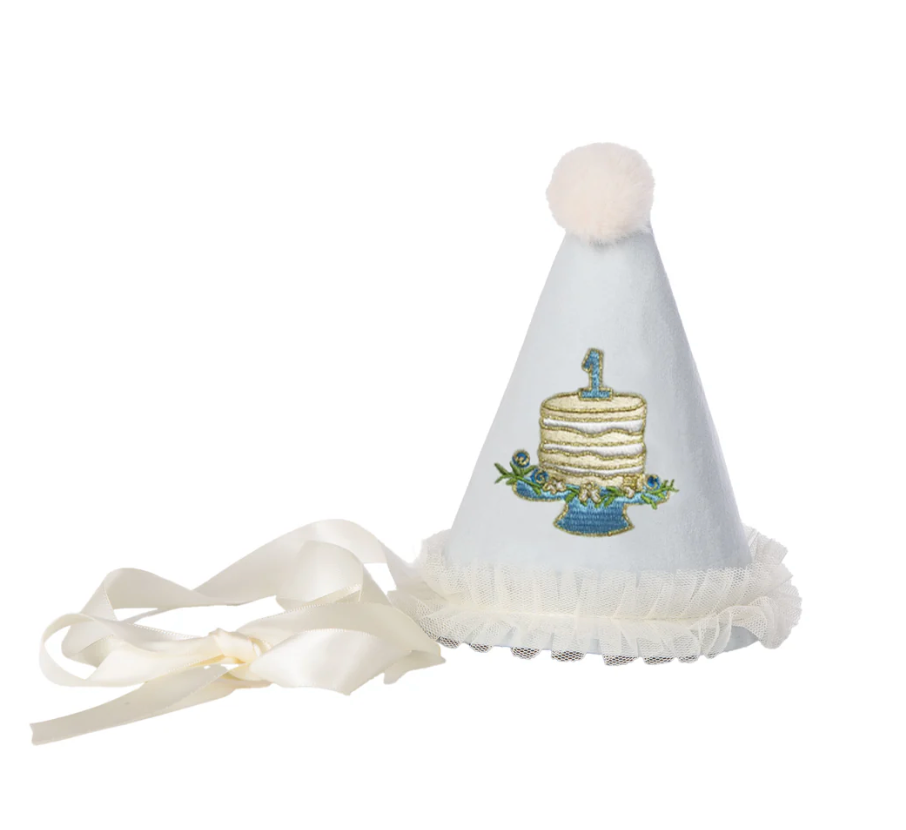 Add a touch of royalty to your little one's special day with our ONE Party Hat with Laurel Wreath Embroidery! The luxurious velvet finish and sweet faux fur pom pom will make your little prince feel like they've got the royal treatment! Plus, this darling first-birthday-accessory is the ultimate crown-jewel for the big day.