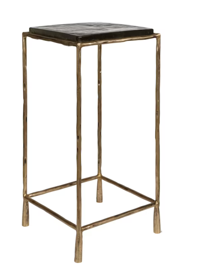 Designed With Minimalism And Versatility In Mind, This Hammered Iron Accent Table Is Coated In A Richly Antiqued Gold Finish With A Thick Cast Glass Top.