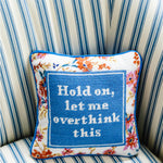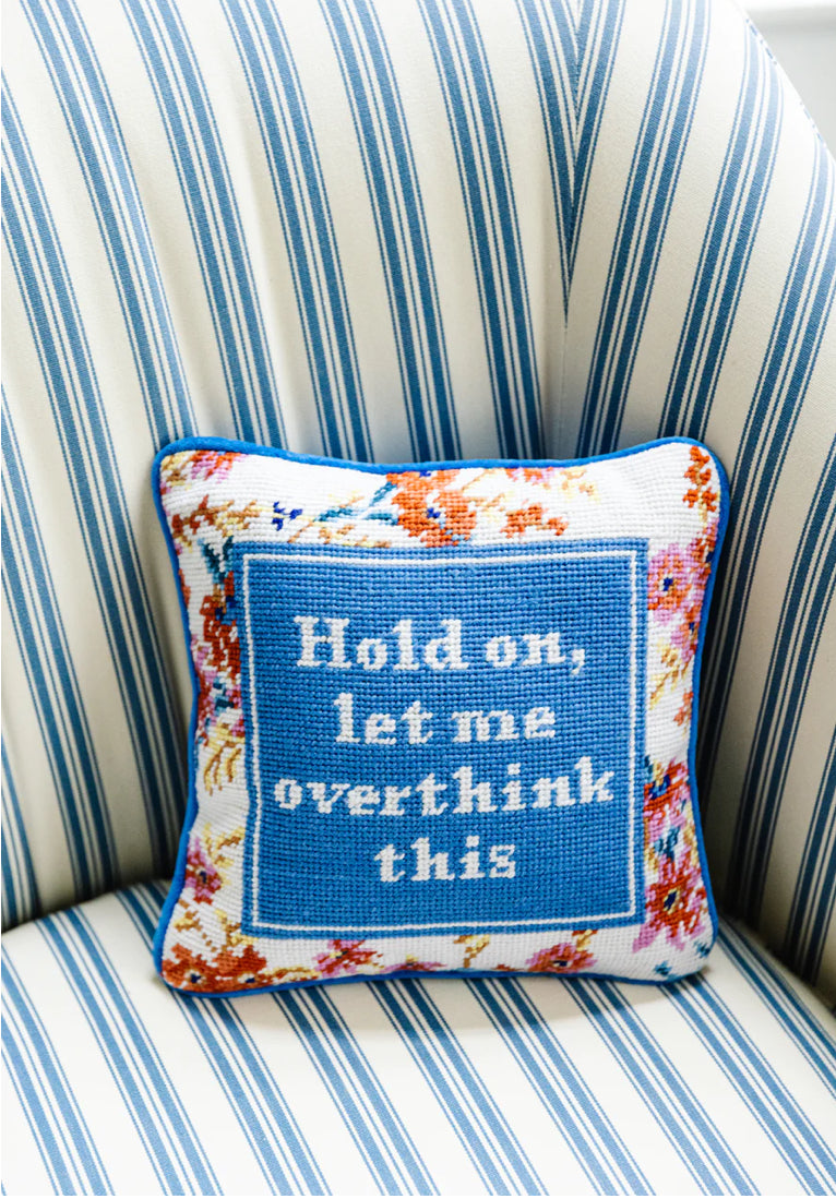 Make a statement with this charming-meets-chic needlepoint pillow. Hand embroidered in wool and backed in luxe blue grey velvet, we've revived this Southern staple with sayings that are sure to get a smile.