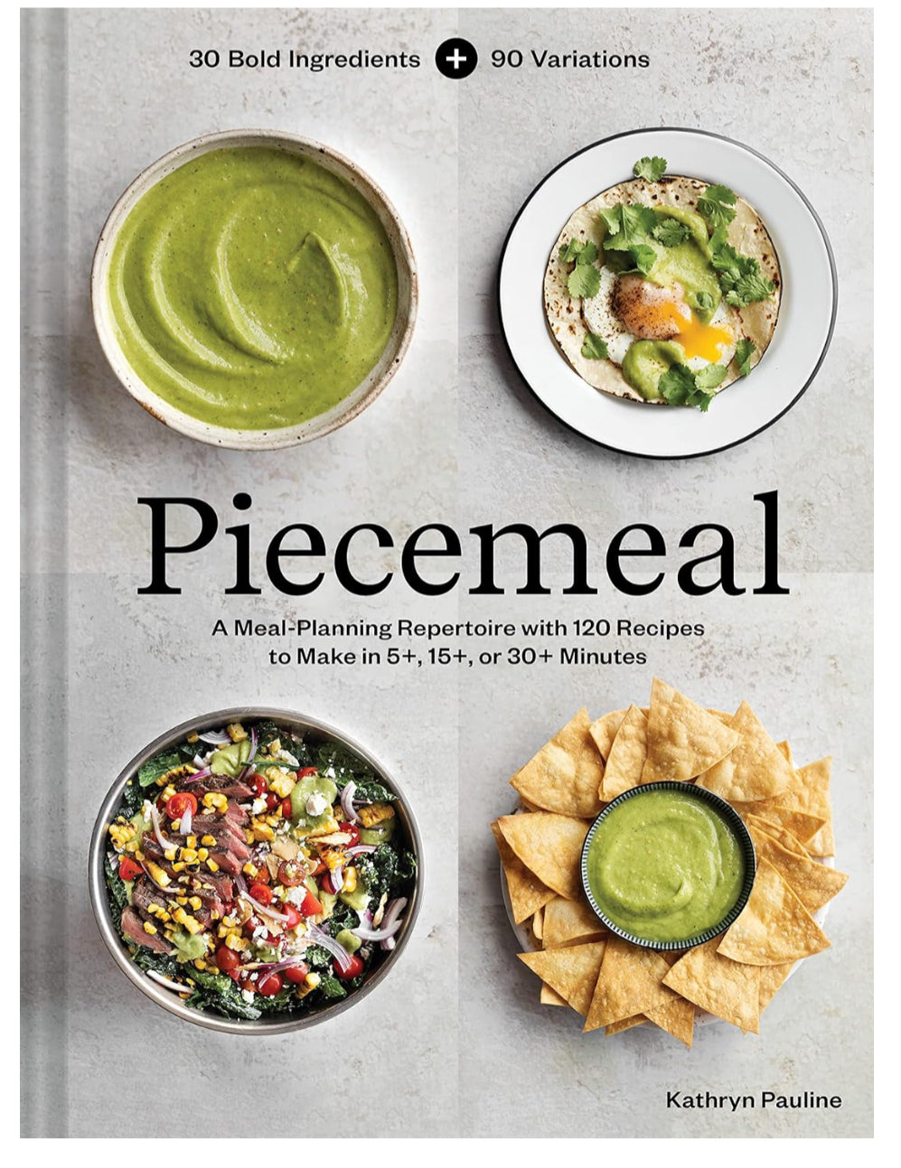 A new meals-in-minutes cookbook from recipe developer, photographer, and blogger Kathryn Pauline! Based on the idea that one go-to component can anchor several meals, Piecemeal is designed to help a busy home cook prepare delicious meals simply, in 5+, 15+, or 30+ minutes.