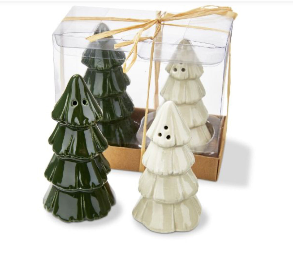 Hello, trees! Salt & pepper shakers are essential to any kitchen. This adorable set features beautiful sculpted design and hand-painted details, a lovely accent to the season's tablescapes. With retail-ready packaging, salt & pepper sets are perfect for gifting.