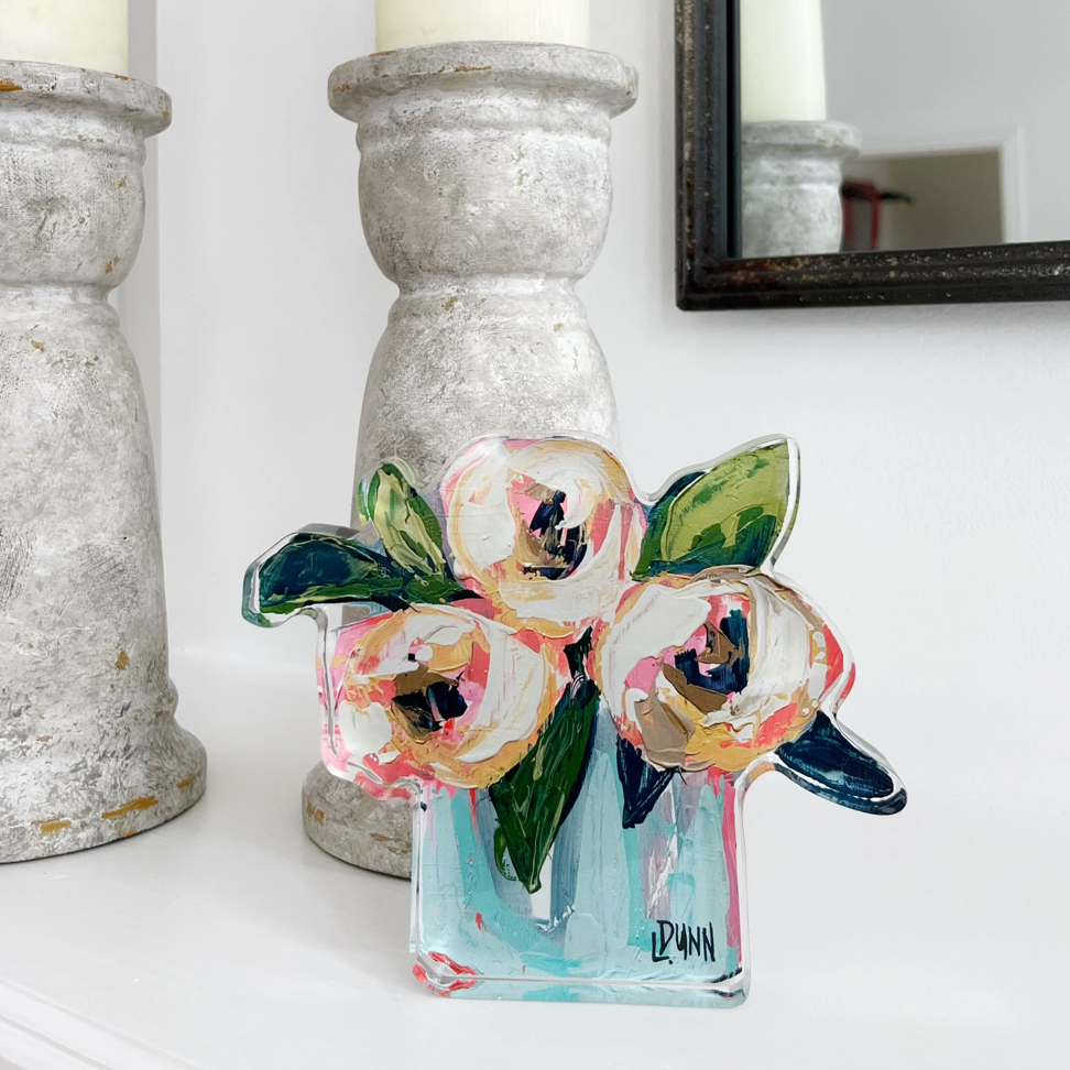 These pink and white peonies are a joyful celebration of beauty in full bloom. With soft, romantic hues and Lauren’s signature painterly style, this silhouette acrylic block is a cheerful addition to any space.