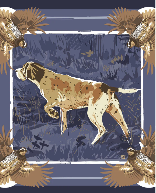 This pocket square combines elegance with a tribute to Georgia’s upland hunting heritage. Sized at 11.5 × 11.5 inches and finished with hand-rolled edges, this pocket square is designed for versatile wear with a nod to sporting interests. When folded, only the border is visible, maintaining a classic appearance while quietly referencing the sporting inspiration behind the design.