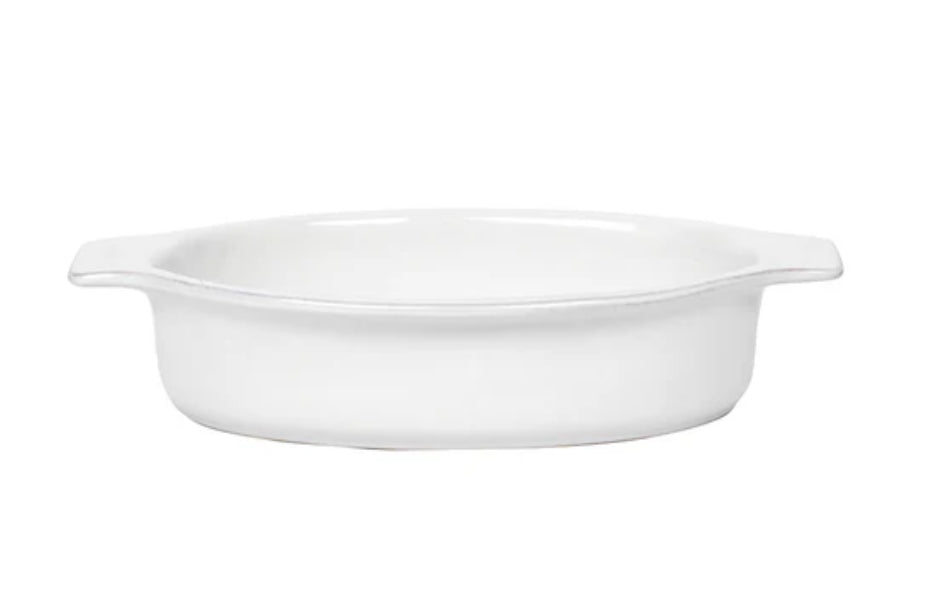 From crumbles to casseroles to cassoulets—this dish is designed for oven-to-table baking at its finest. With its gleaming whitewash glaze and trademark texture that evokes rumpled linen, this oval baker is modern, timeless, and simply beautiful by design.