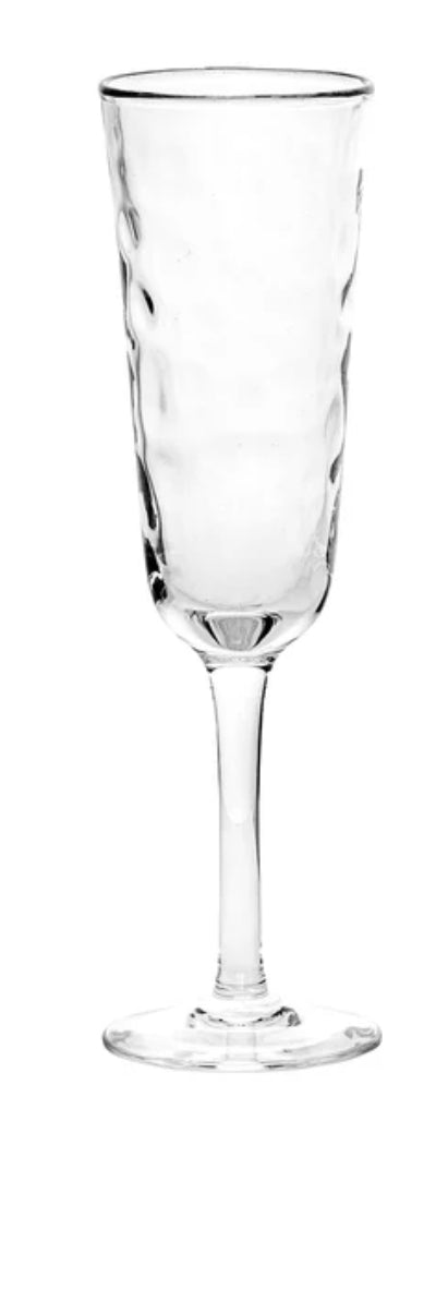 Crafted to subtly shimmer like sunlight-dappled water, our Puro flutes become decadently brilliant when filled with bubbly. Cheers to milestone moments, sunsets, and good vintages.