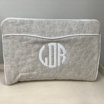 Our Quilted Makeup Bag comes in a slim envelope style that slips easily into an overnight bag, but still provides enough room for all your skincare and beauty essentials. Interior zipper pockets and toothbrush holder keeps the contents secure and organized. Customize your bag and choose from a durable yet beautiful satin or linen.