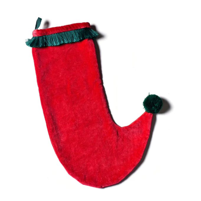 The elf foot stocking style pairs green accents on the trim and a pom pom ball at the end. Pair this stocking with our Red Velvet Tree Skirt with Trim for effortless and timeless décor you’ll love for years to come.
