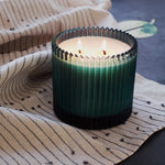 Roland Pine Two-Wick Green Ribbed Glass Candle