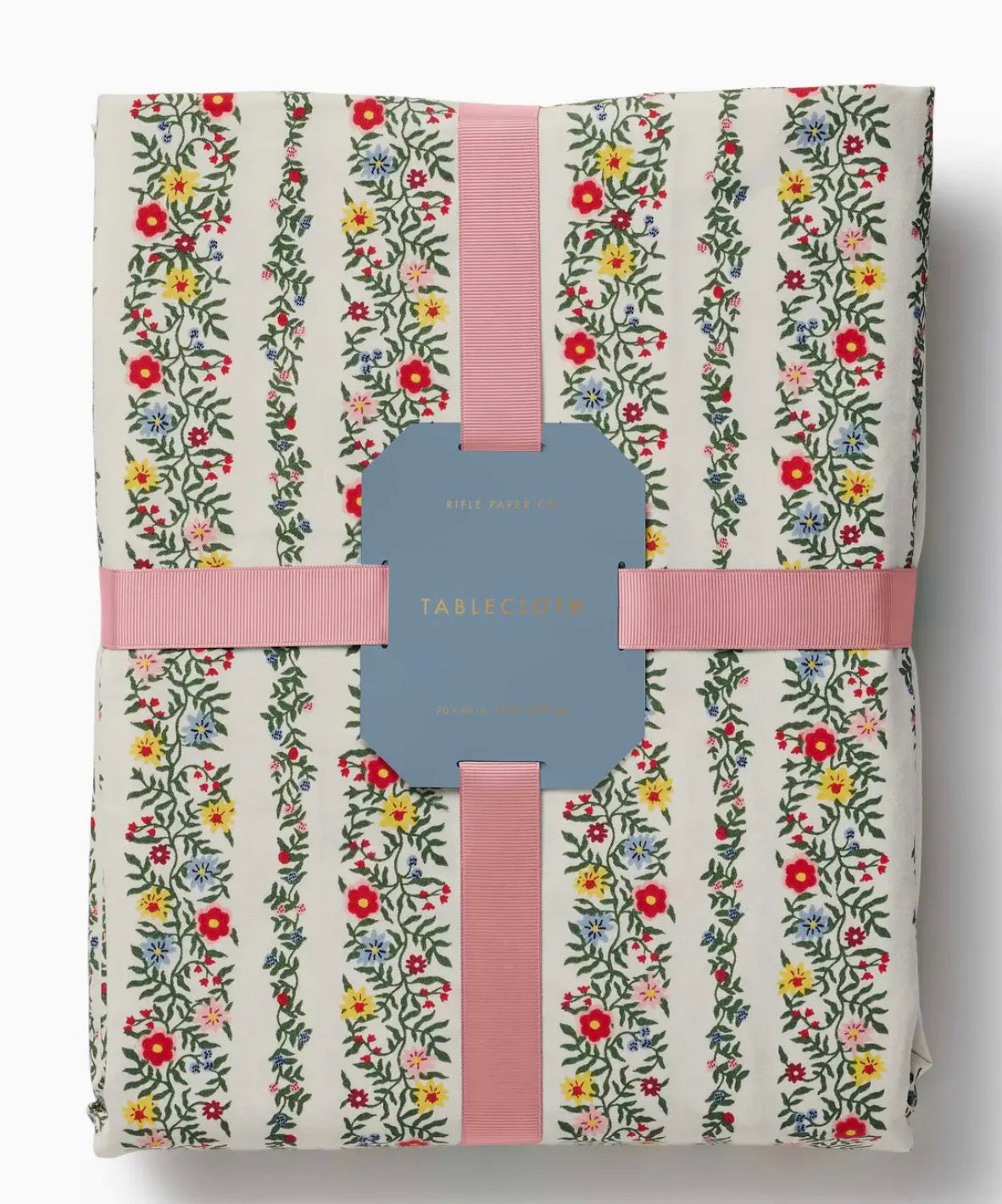 DETAILS - 100% cotton - Machine wash cold separately. Line dry. Warm iron on back if needed. - Digitally printed - Metallic ink accents - Rickrack trim - 70" W x 108" L