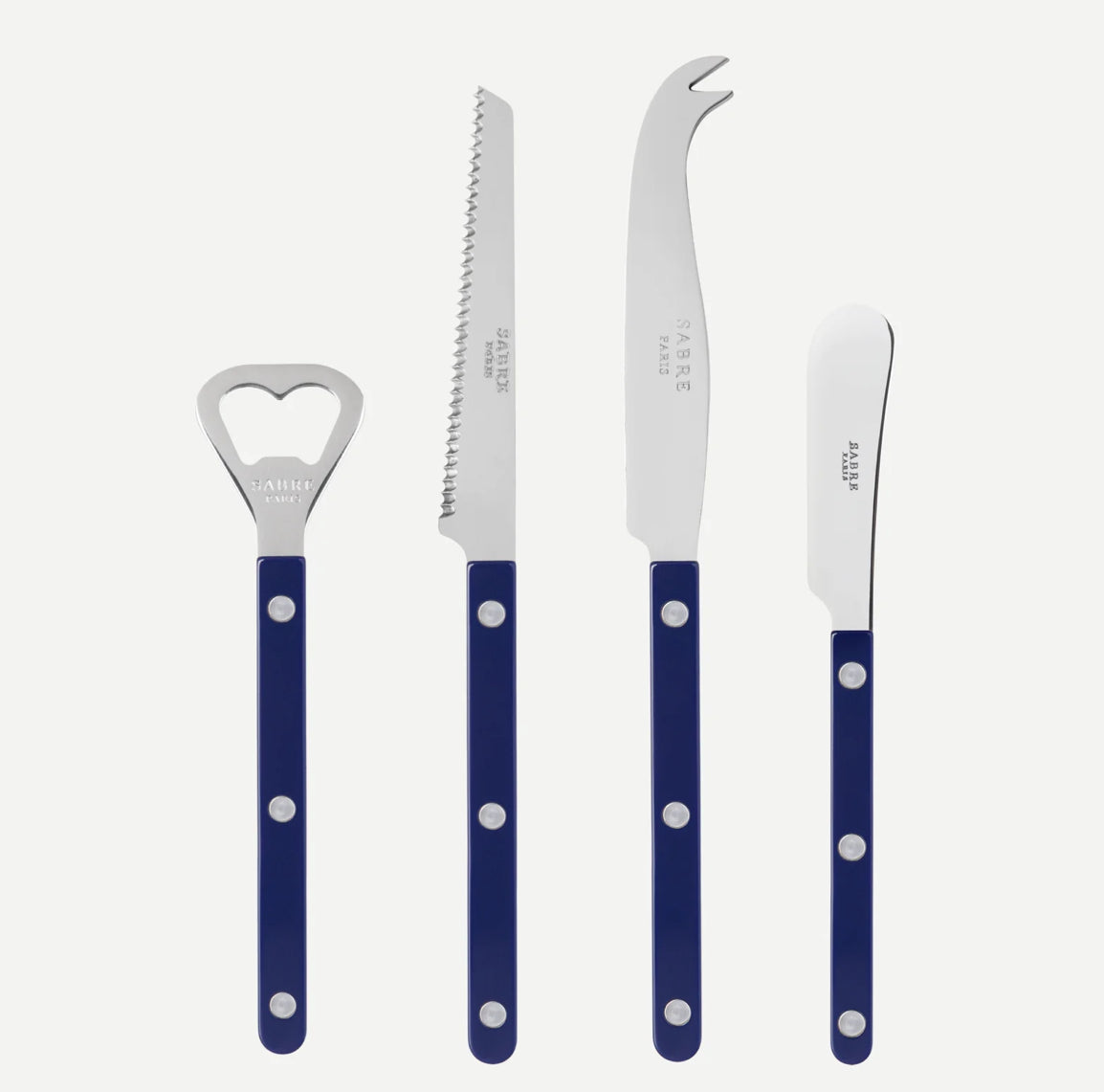 To offer or to treat yourself, this set of 4 pieces for the aperitif contains the essential cutlery to make this convivial moment a success. It includes a bottle opener, a tomato knife, a big knife and a butter spreader. A perfect gift idea!