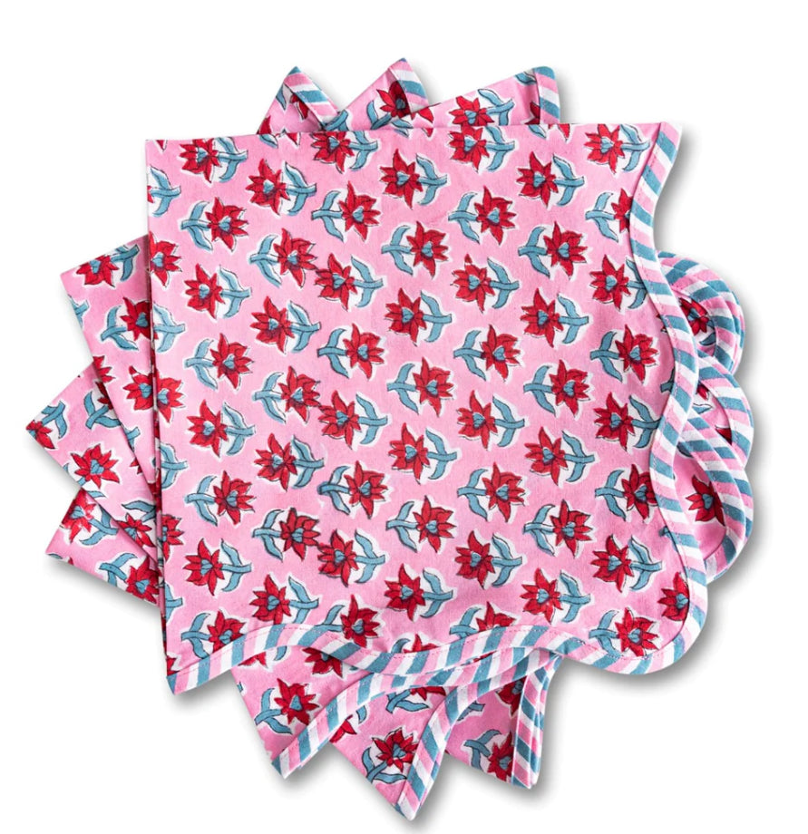 Make your meals extra festive with our exclusive blockprint napkins. Handmade in India , the charming color combo and the striped trim make a bold statement. By opting for sustainable table linens over disposable, we can help cut down on waste and support an age-old craft by artisans in Jaipur.