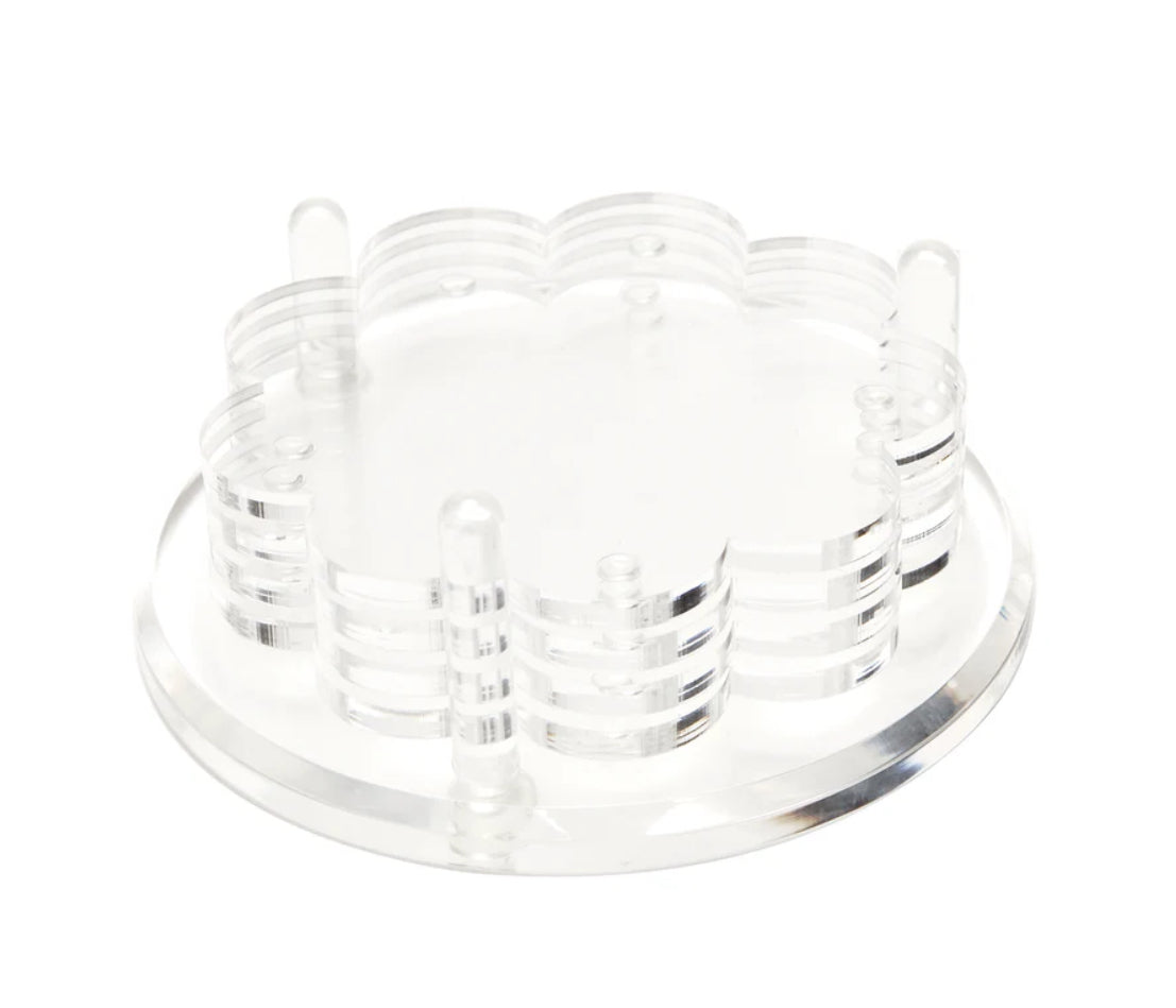 Enhance your table setting with our elegant clear scallop coasters. Perfectly chic on their own or they also pair beautifully with our scallop Mahjong racks for a coordinated and stylish look.