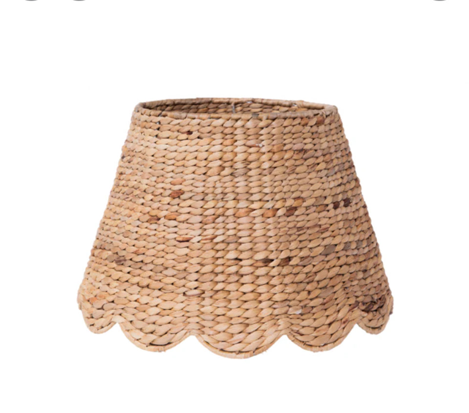 Handwoven water hyacinth lampshade with signature Maison Maison scallops along the bottom.