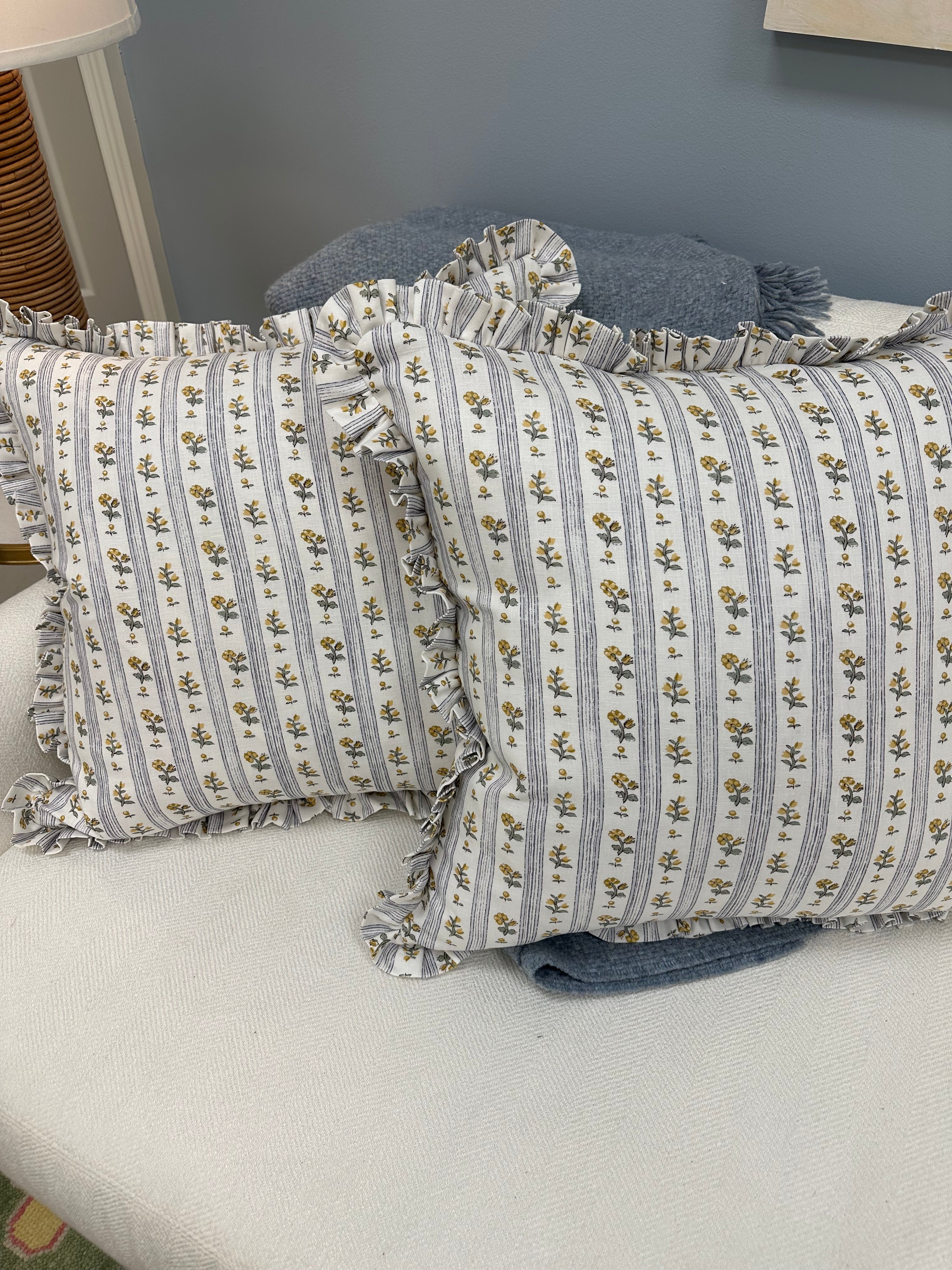 Custom made Schumacher throw pillow 24"x24" in Canon Stripe Jaune.