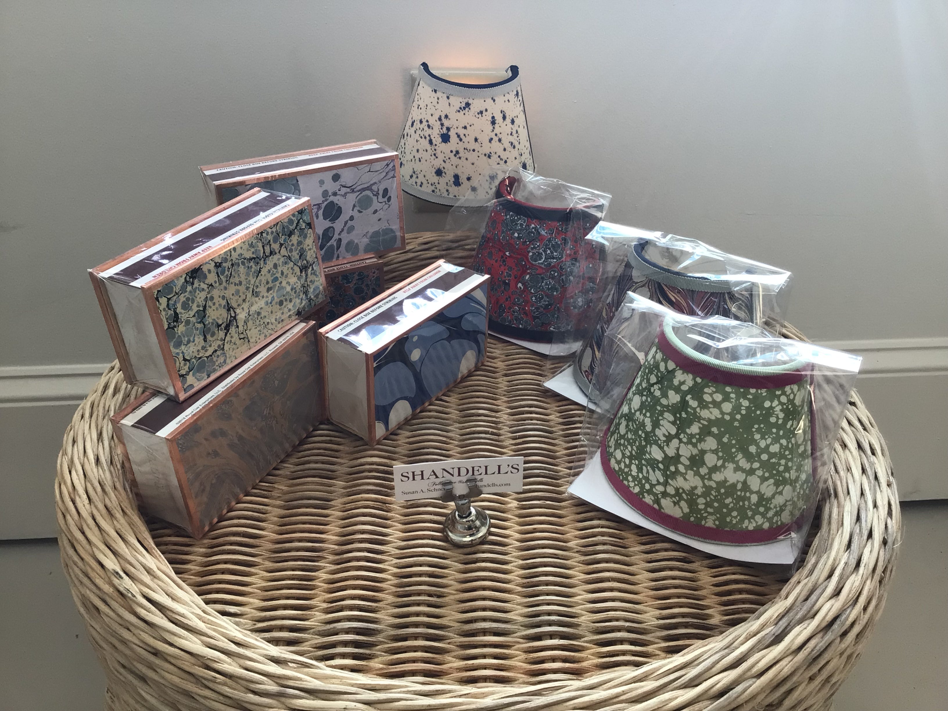 Years ago on a search for a night light I could not find one I would use, so I came up with one that will make you smile. Marble paper trimmed with grosgrain, each one is a small piece of wall art for your home. Comes with plug and bulb.