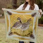 A border of pinecones anchors the corners, echoing the longleaf pine landscape so central to quail country. Make the scarf versatile as both an elegant accessory and a bold piece of art to hang in your home.