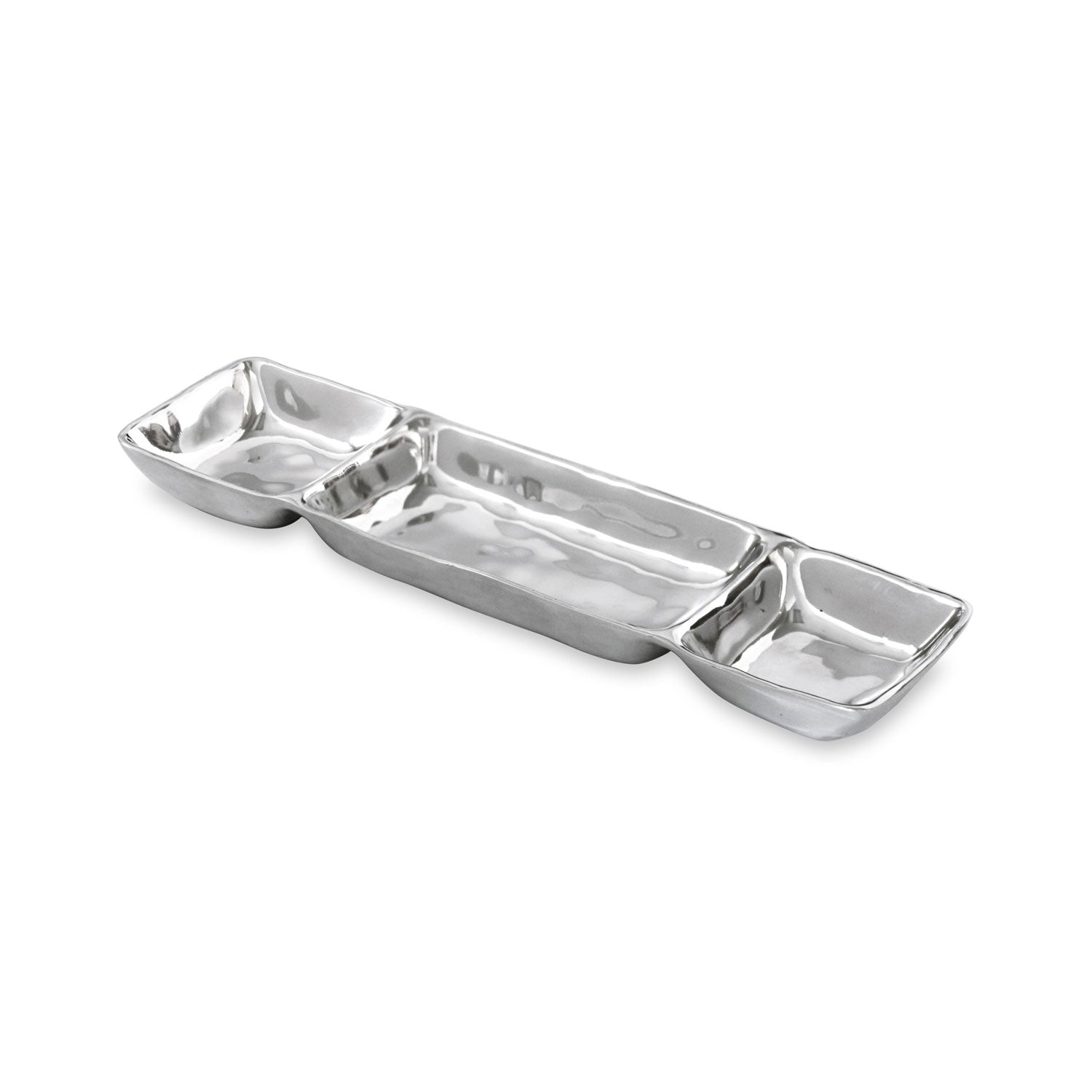 Simply sophisticated. The SOHO Small Rectangular Triple Dip, in Beatriz Ball's signature sand-cast metal, is elegantly simple in design. Beautifully hand-polished to a brilliant shine and with three generous wells, the piece is perfect for cocktail garnishes like cut lemons, limes and olives. We like on the vanity for an elegant place to hold jewelry. Great for snacks and condiments, too. With lifestyle trends leaning toward home entertaining, this piece makes a great gift! Beatriz Ball’s intensely handmade products use eco-friendly and sustainable materials and are crafted by artisans who trace a heritage of metalworking for generations. Made of a top quality, FDA safe, easy-care, oven and freezer friendly aluminum alloy