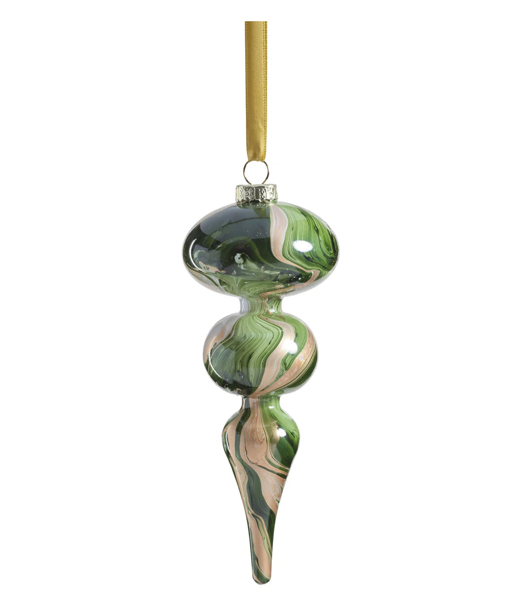 Solid Luster Watercolor Glass Ornament - Green and Gold - Finial