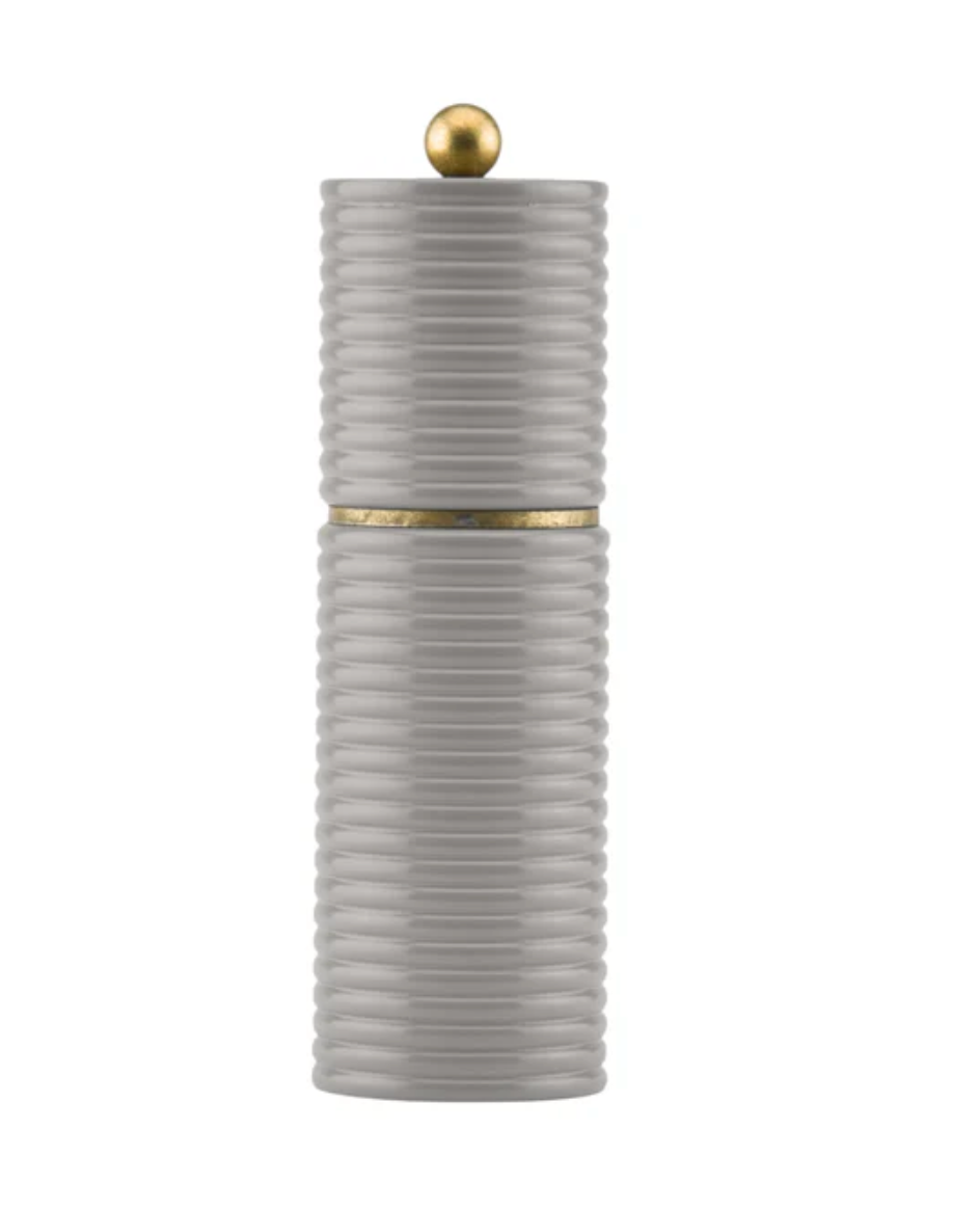 Our collaboration with Sophie Paterson presents the exquisite Reed Salt or Pepper Mill, crafted with a luxurious wooden body, including an elegant antique brass metal trim. Featuring a versatile grind adjustment, these mills offer precise seasoning control for both coarse and fine textures. Clean gently with a damp cloth and avoid abrasive cleaners. Each mill comes beautifully gift boxed.