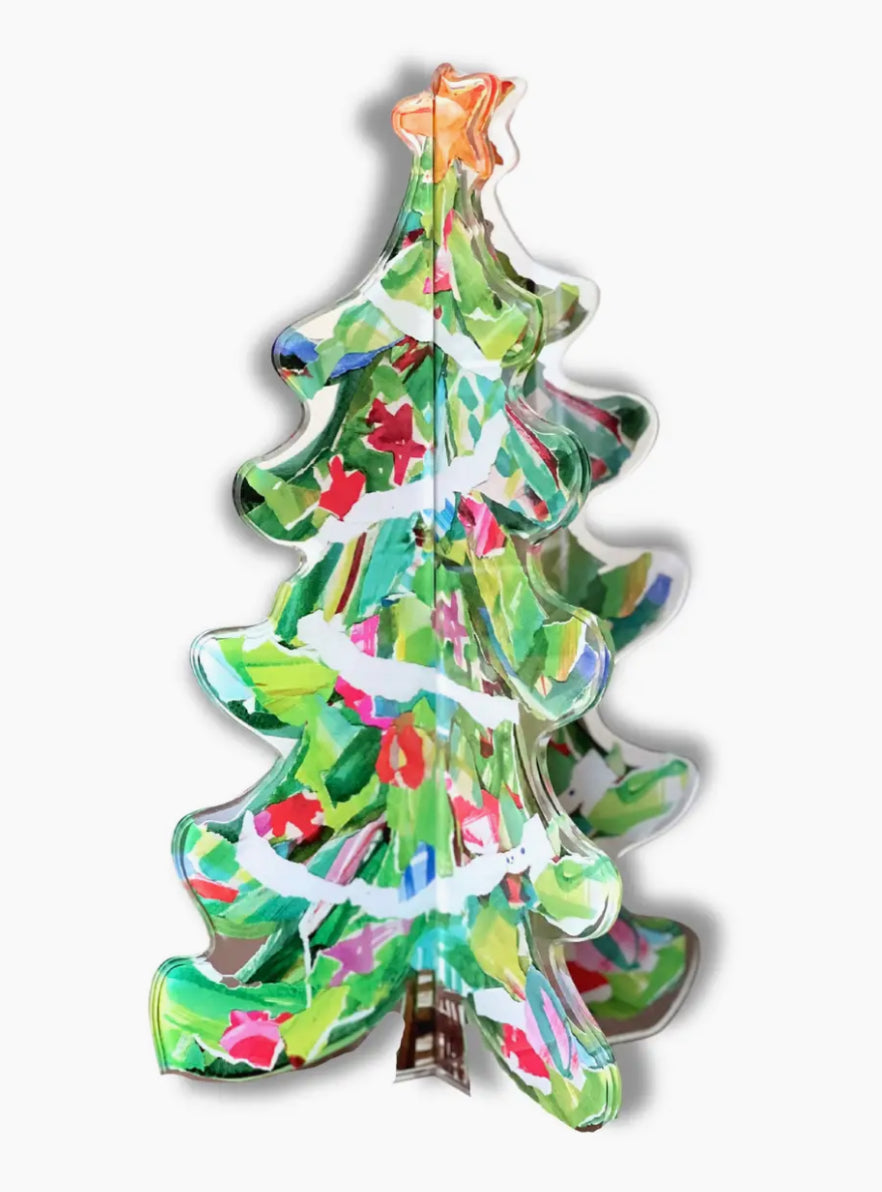 Make a statement this holiday season with our Jubilee acrylic Christmas Tree. This unique piece features two artistically designed acrylic panels that slide together, forming a beautiful 360-degree tree. The vibrant and festive details capture the spirit of the season, making it a perfect centerpiece for any room. Crafted from high-quality, 1/4" thick acrylic, this easy-to-assemble design ensures quick setup and storage, making it a convenient yet beautiful addition to your holiday collection. Perfect for tabletops, mantels, or as a unique gift, our Jubilee Acrylic Christmas Tree is a fresh take on traditional charm. Celebrate the holidays with this eye-catching decoration, and let it bring special memories to your home for many years to come! 13" TALL
