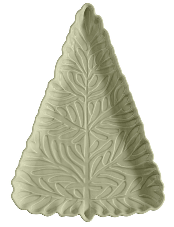 Introduce a touch of woodland wonder to your holiday table with our Stamped Ceramic Christmas Tree Platter. Expertly crafted from food-safe ceramic, this 11 L x 7.8 W platter is cut into a festive tree silhouette and pressed with a delicate evergreen?branch pattern. Generously sized for cookies, cheeses, hors d'oeuvres or your favorite charcuterie, it doubles as an eye-catching centerpiece when not in use. Hand wash only