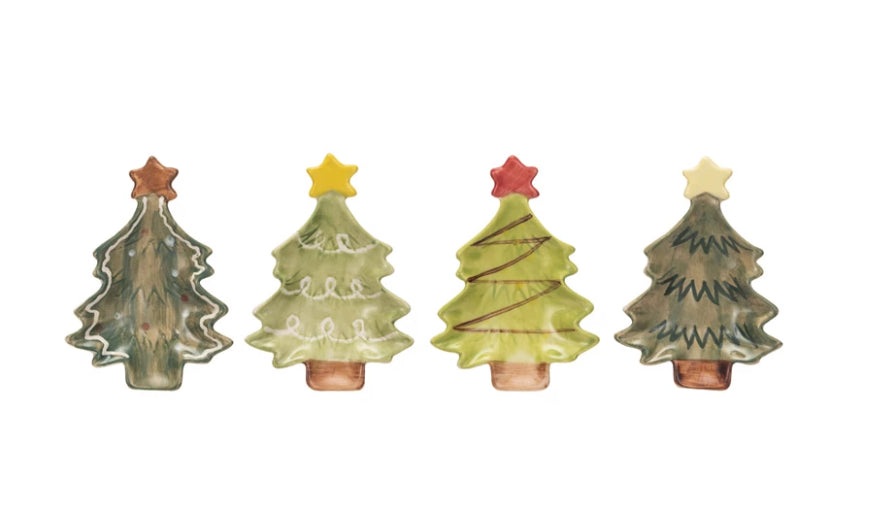 4"L x 2-3/4"W Hand-Painted Stoneware Christmas Tree Dish w/ Star, Multi Color, 4 Styles