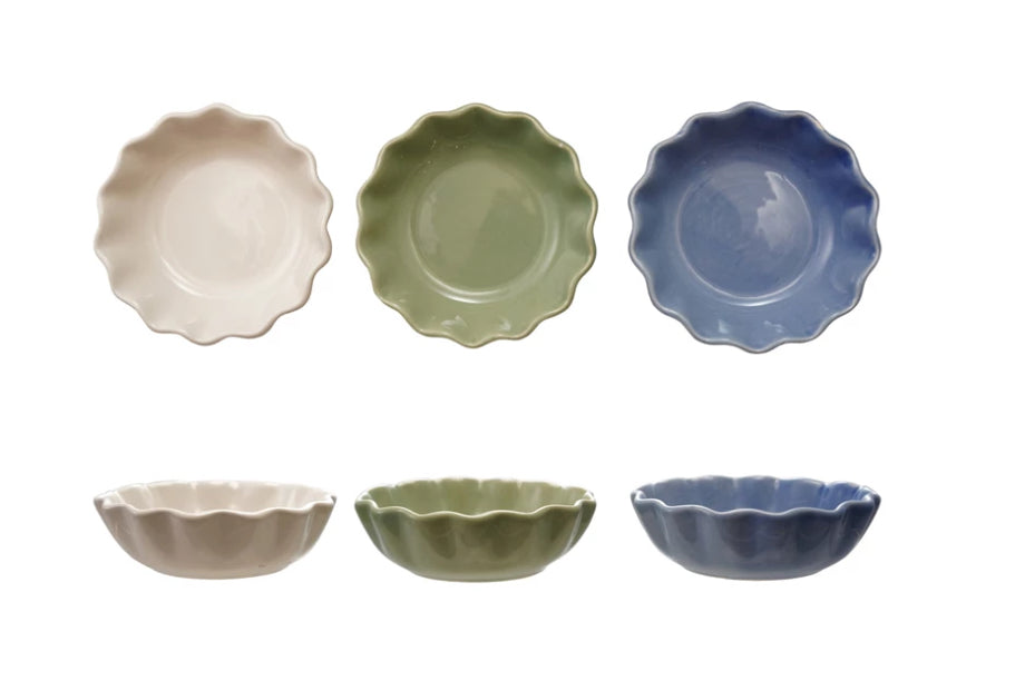 4" Round x 1-1/4"H Stoneware Scalloped Bowl, Reactive Glaze, 3 Colors (Each One Will Vary)